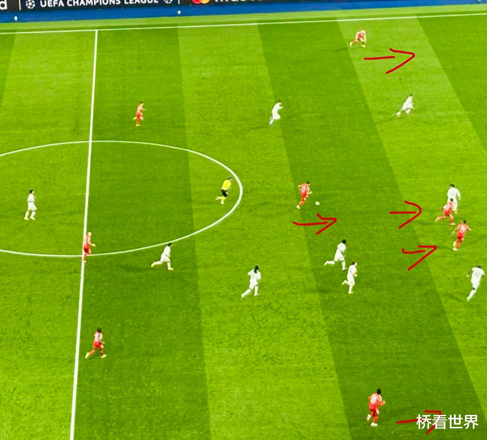 穆里尼奥的部署不止于此。葡萄牙主帅还下令攻击楚阿梅尼与卡马文加之间的身后空当,由拉法·席尔瓦或一名中场前插至此。帕夫利季斯也承担类似角色,游走在特伦特·亚历山大-阿诺德与劳尔·阿森西奥之间,让皇马防线在盯人时犹豫不决。