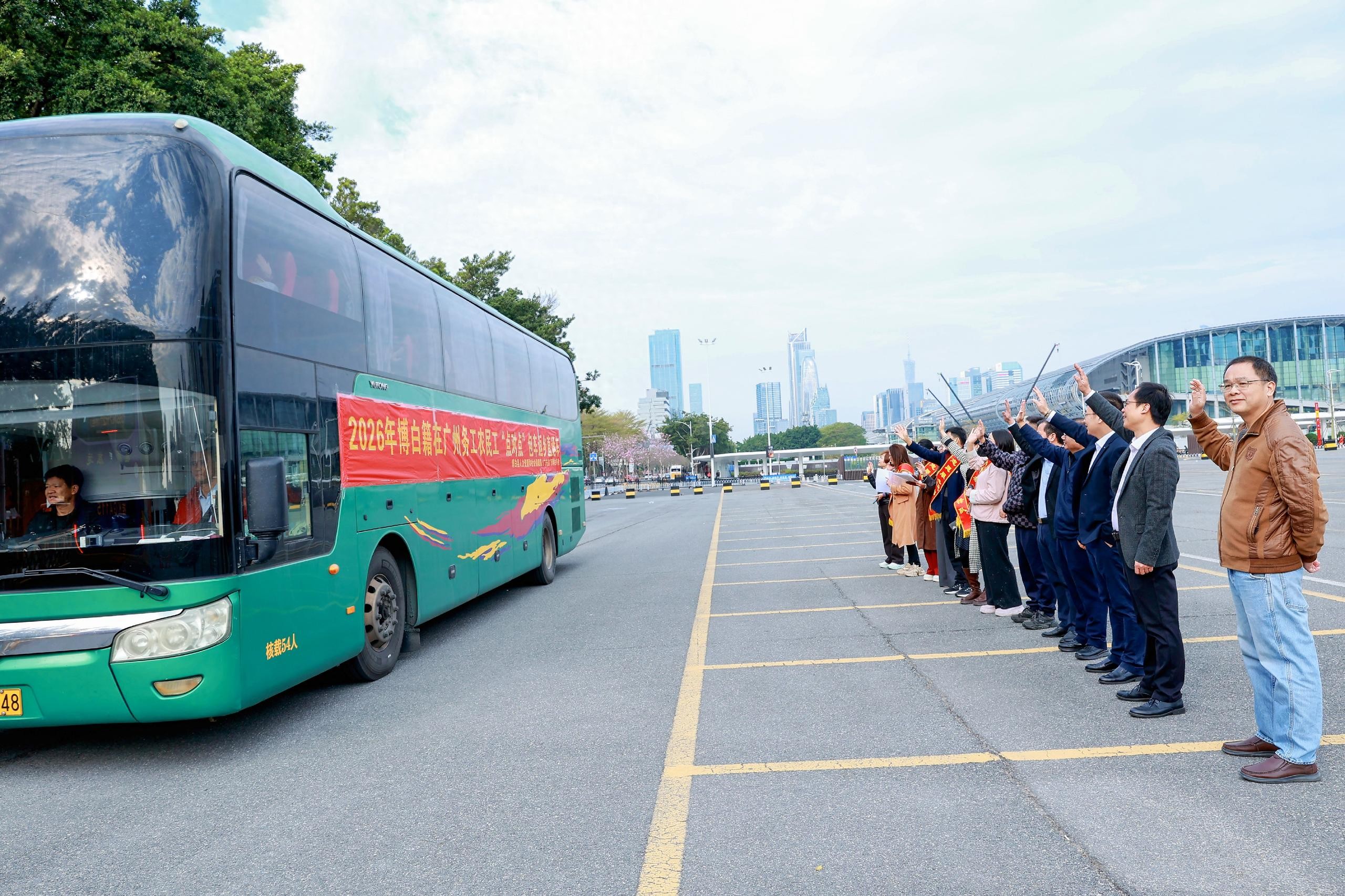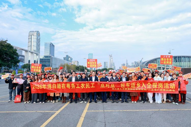 时值春运,归心似箭,为解决在粤博白务工人员返乡难问题,让在外打拼的乡亲平安、便捷、温暖回家,2026年博白县人力资源和社会保障局携手广东省广西博白商会,共同举办关心关爱农民工,组织在粤博白籍农民工乘坐免费大巴车返乡入企探岗活动。