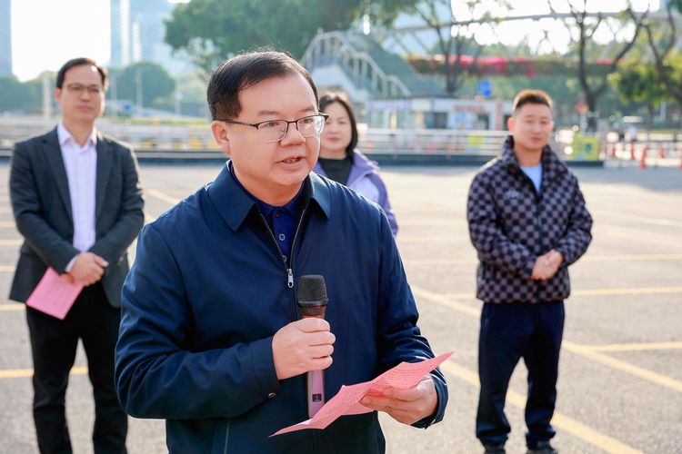 ❤️政企联动 凝聚乡梓关爱力量在发车仪式上,广东省广西博白商会会长庞波登台致辞,向不辞辛劳在粤打拼的博白务工乡亲致以最诚挚的慰问与祝福,同时向大力支持本次活动的博白县人社局及为返乡护航的司机、工作人员表达敬意。