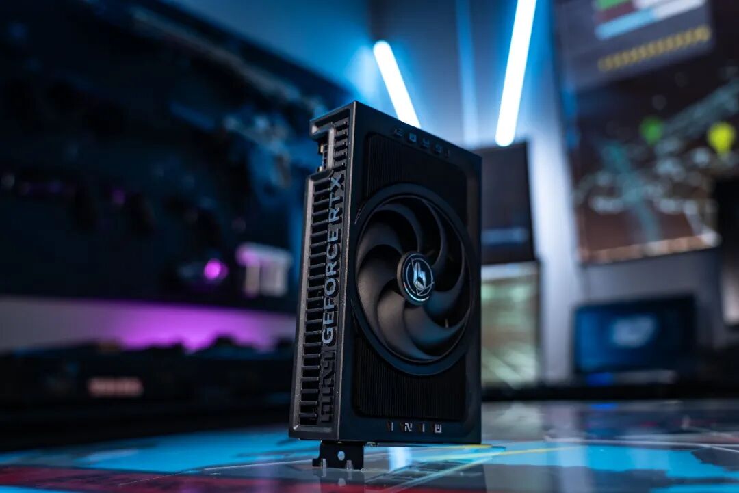 散热方面,显卡采用创新的笼式结构结合外露鳍片设计,有效增大散热面积并降低风阻。通过优化热管布局与风扇启停曲线,即使在单风扇与紧凑体积下,依然能实现越级散热表现。正因如此,本代产品得以首次推出RTX 5070 Mini型号,成为名副其实的“性能小钢炮”。