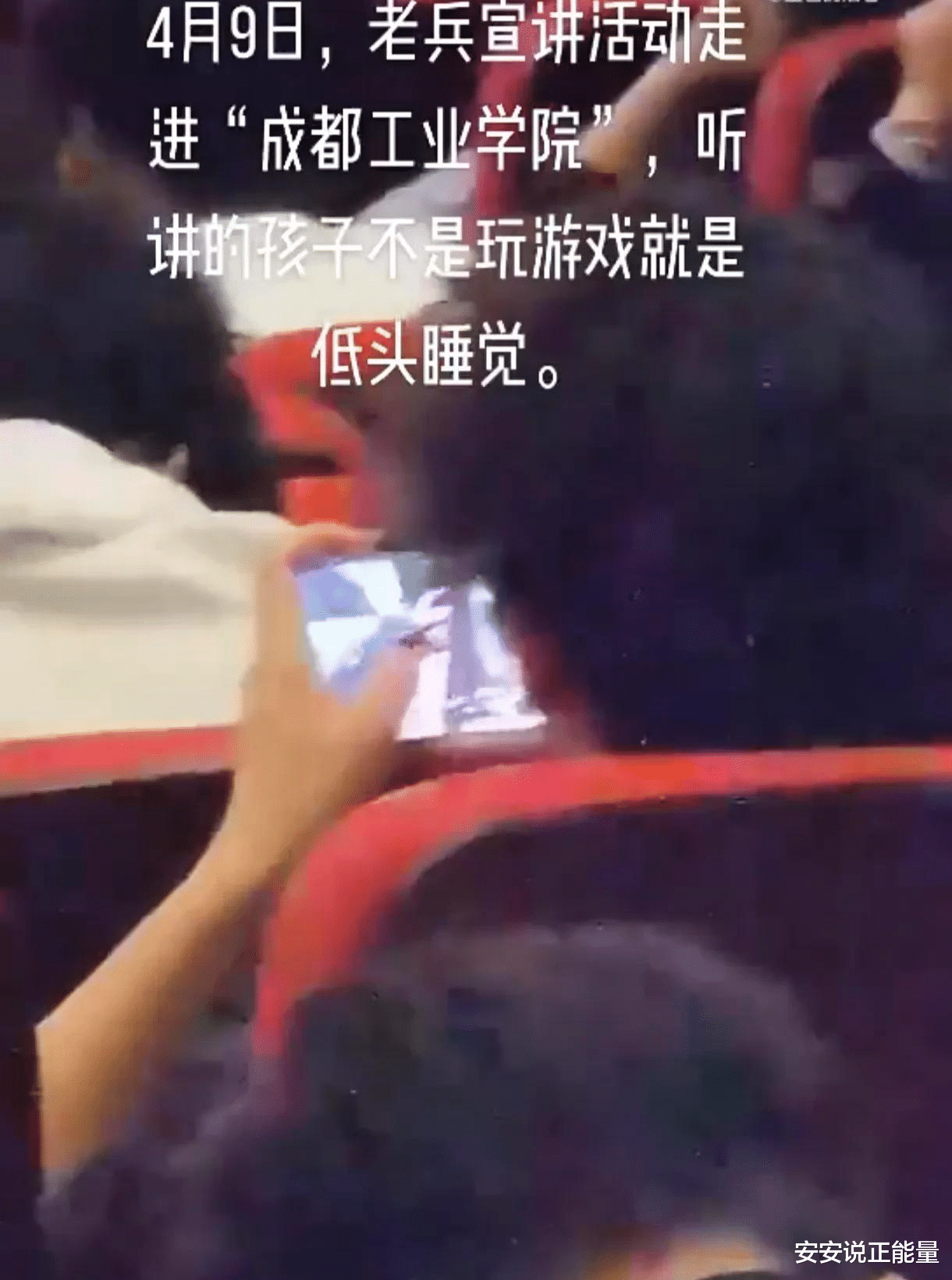 面对老兵振奋人心的宣讲,这些学生却在玩手机、睡觉。这样的场景要是让老兵看到,估计心都要滴血了,他们奋不顾身创造的新中国,现在孩子们却把他们给忘记了、给轻视了。