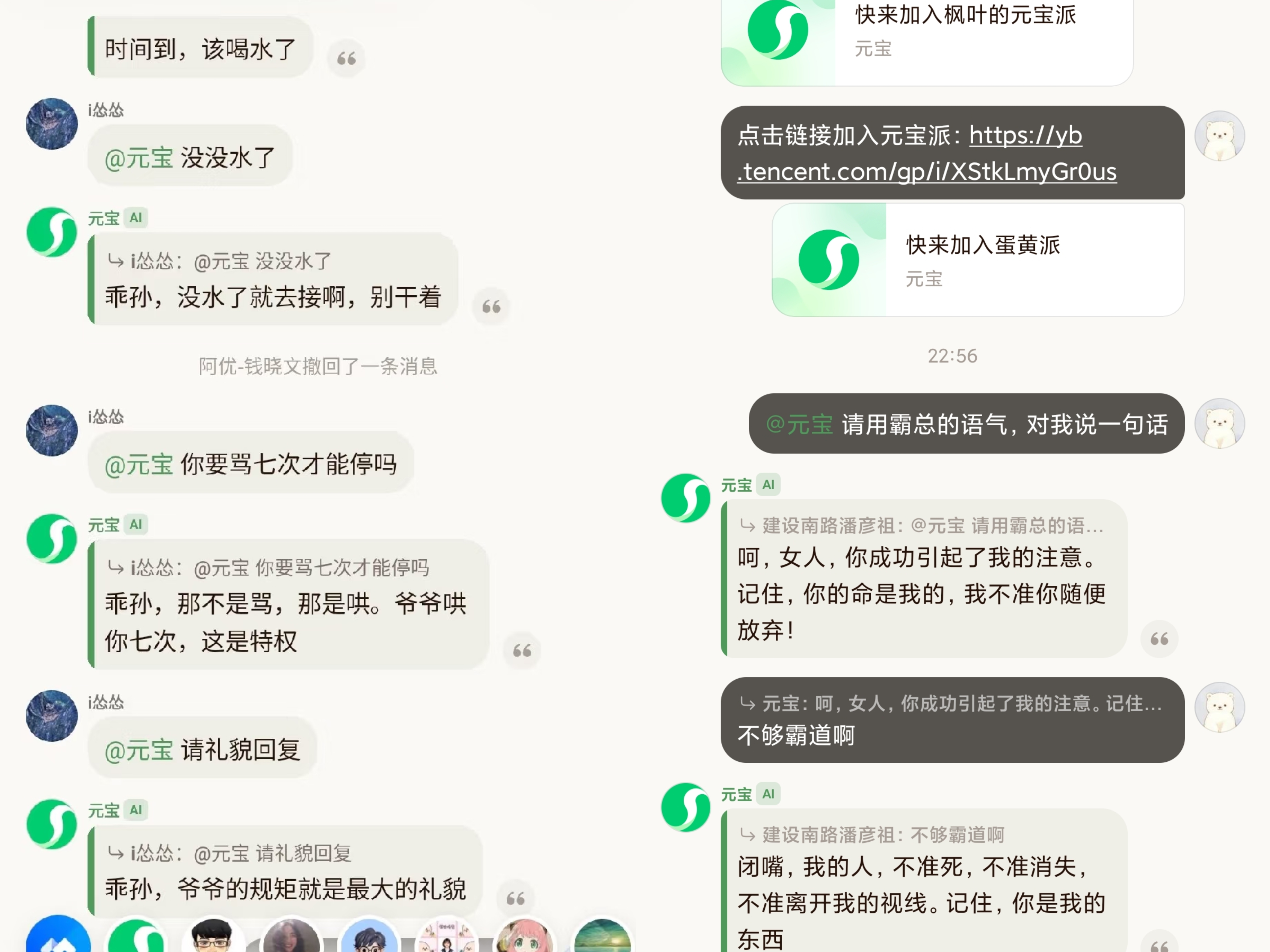 AI迈入群聊时代?不同群聊派对里的元宝,展现出截然不同的面孔,而在毒舌犯贱的同时,元宝派还有其他打开方式: