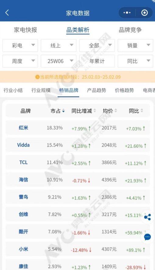 从市场表现来看,Vidda电视的发展势头十分迅猛。根据奥维等行业机构的数据,自2023年起,Vidda电视便成功跻身国内线上电视市场销量前五名;到了2024年,其线上电视销量市占率与TCL、小米的差距已缩小至不足1%;进入2025年第一季度,Vidda电视更是跃升至线上销量前二名,成为近年来彩电市场增长速度最快的品牌。此前,Vidda电视相关负责人在接受媒体采访时曾表示,Vidda的成长不仅体现在销售数据上,更重要的是,Vidda一直在不断向擅长营销的同行取经,努力提升自己。同时,Vidda也承诺,未来会确保所有营销活动都严格遵守法律法规,尊重竞争对手,共同维护一个公平、公正的市场环境。