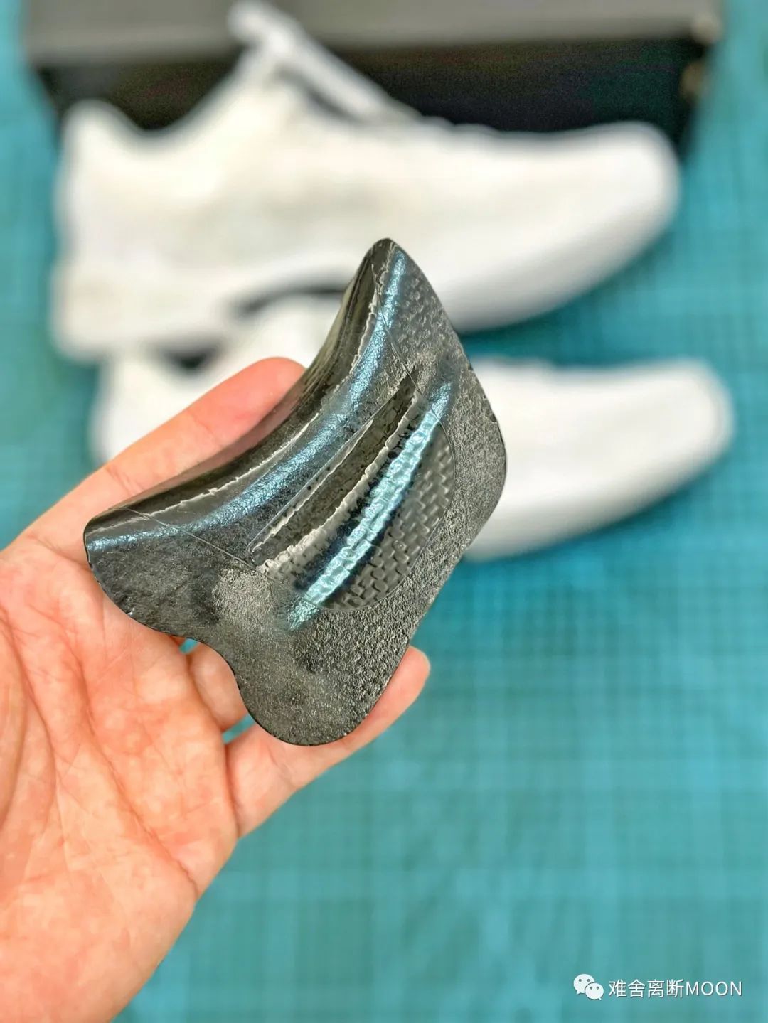 看一下鞋底,大块的碳版泛着幽幽的你黑光。