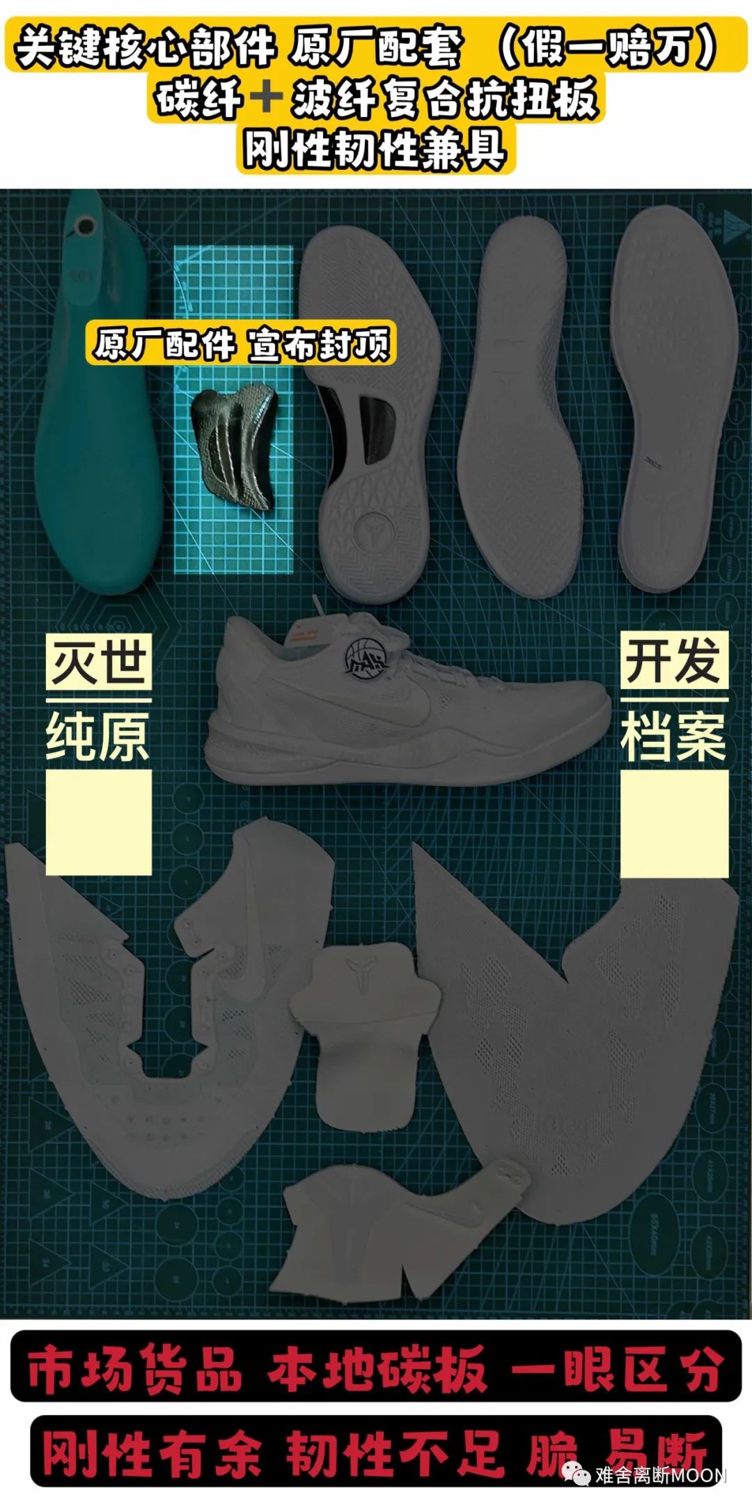 科比8代原厂抗扭片,采用碳纤玻纤混合编织,这个并不是大家熟知的碳纤维板,极度轻量化的同时刚性韧性、完美结合。
