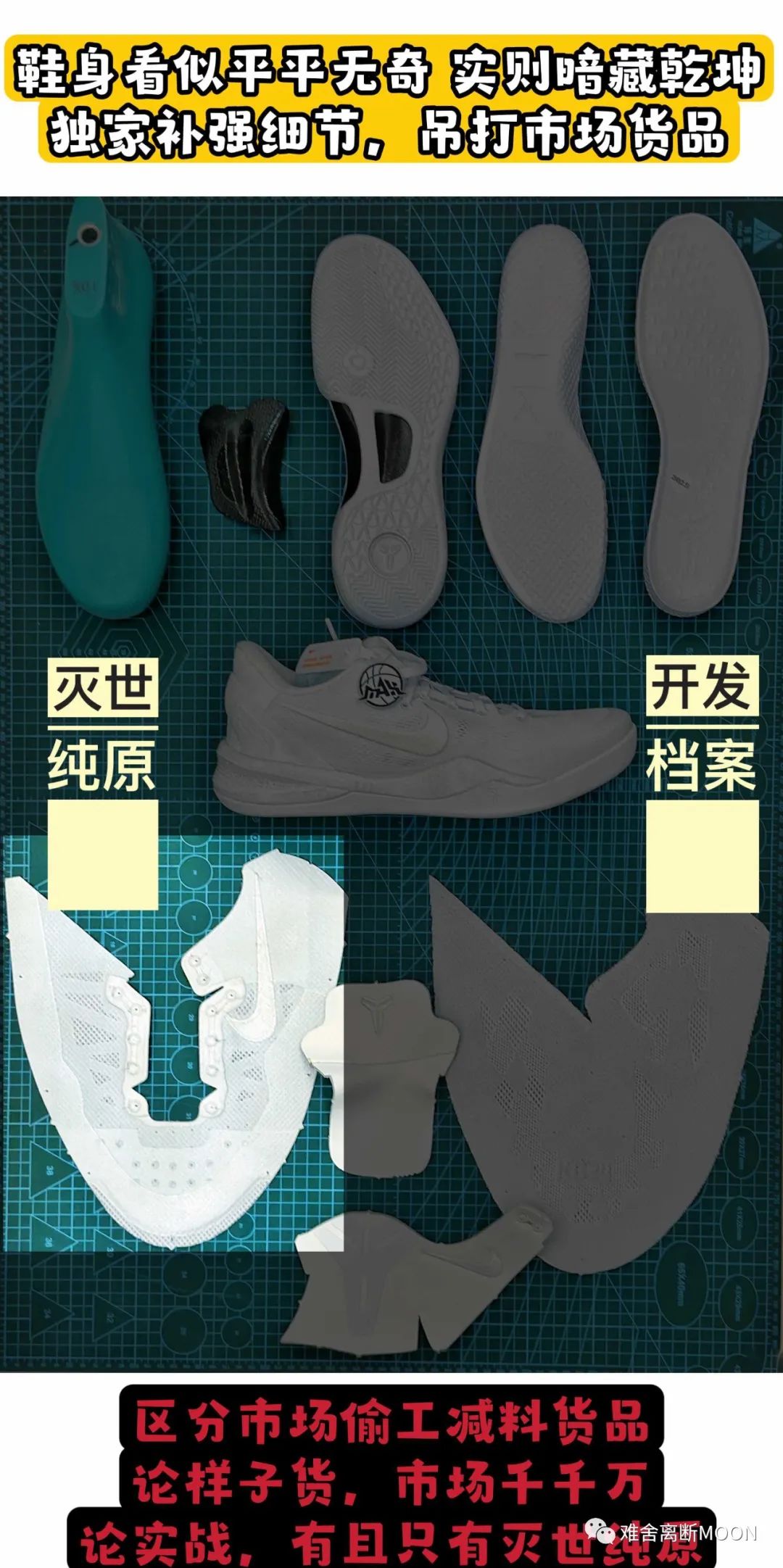大家可以看到,月亮科比8鞋垫缓震材料60HC,要比官方硬度高3度,抗衰减,衰减更耐久。而且月亮的科比8中底防侧翻补强条使用特殊材质,独家一体成型!作为对比,正常篮球鞋中底框架硬度为65~68HC,由此可见这个科学的软硬对比。