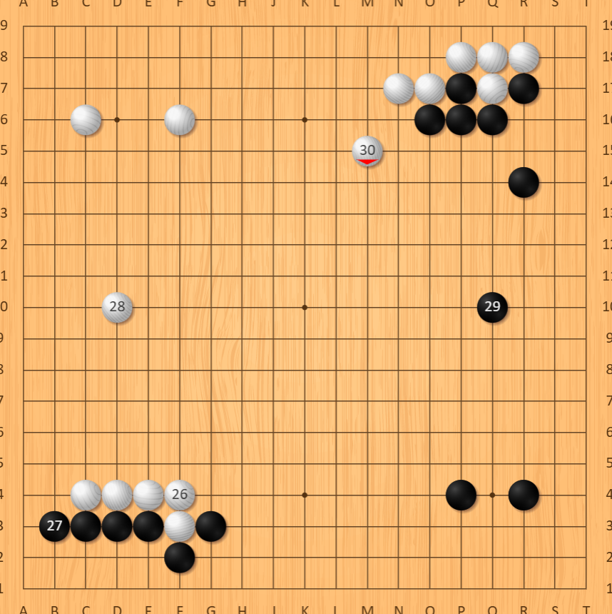 实战中,党毅飞执黑先行,丁浩则手握白棋。本盘激战双方在简单布局之后,便在棋盘左上展开了激烈的对抗,党毅飞九段面对实地的抉择摇摆不定,从而让丁浩九段将左上黑棋数子全部包围,短短数余手便局面优势尽显!