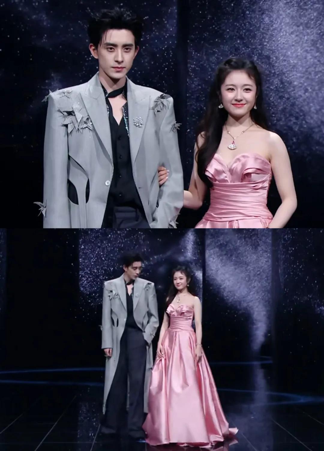 张凌赫和宋祖儿默契地选择了黑色礼服,两人颜值都很高,因此哪怕只是普通的礼服也能穿出耀眼的效果。