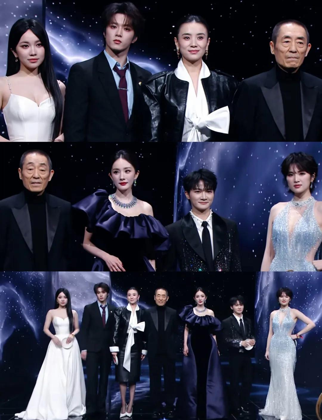 张艺谋也带着《惊蛰无声》的一众主演宋佳、杨幂、刘耀文、林博洋、姚安娜亮相,就连唱主题曲的周深也一同露脸。大家的礼服都以纯色为主,看起来和谐又高级。