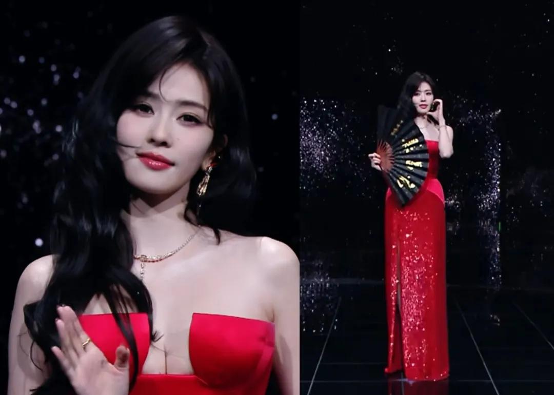 姚晨穿了一条“火焰长裙”,老实说这条裙子更适合那些又高又瘦的女明星或者模特,并且要在道具和背景衬托下才能穿出氛围感。同时,她的披发显得有些累赘,改成利落的盘发和大红唇也许会好一点。