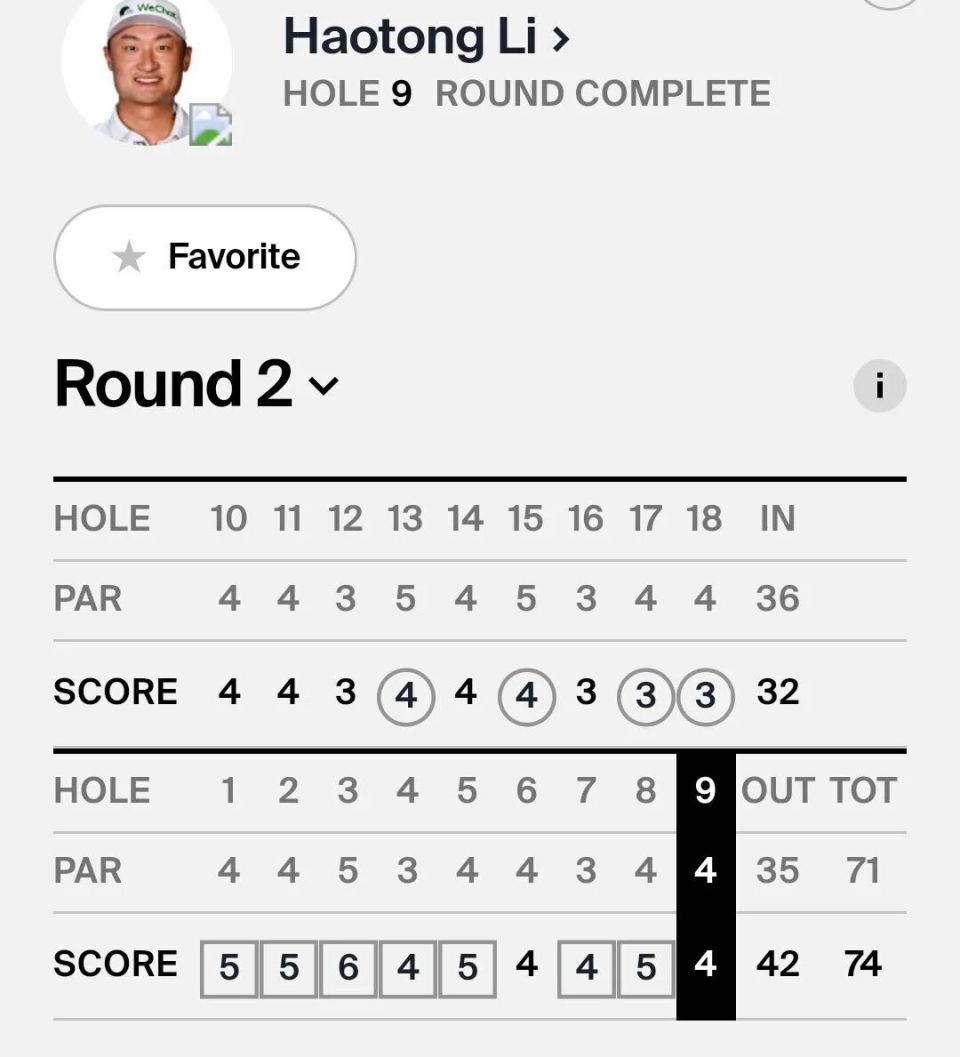 本以为李昊桐在后九洞会继续良好的发挥,孰料他遭遇了“半场滑铁卢”……从1号洞至5号洞,他连吞5个博基,7号洞和8号洞又是两个博基。最终,李昊桐以+3的74杆完赛,总成绩来到+3未能获得晋级。同样未能晋级的还有布鲁克斯·科普卡。