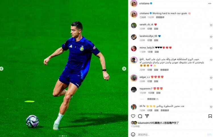 利雅得胜利将于北京时间4月5日客场迎战利雅得新月。赛前C罗晒出了训练照:努力去实现我们的目标!