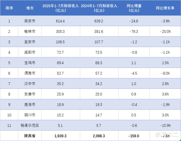 根据统计部门公布的数据,2025年1-7月份,陕西全省共实现地方财政收入1939.3亿元,较上年同期减少159亿元,同比增长率为-7.6%,整体表现较为低迷。