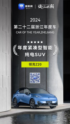 此外,领克Z20荣获由潮新闻、钱江晚报权威颁发的“2024第二十二届浙江年度车:年度紧凑型智能纯电SUV”奖项,这得益于其出色的“出身”、强大的“配置”和独特的“设计”。