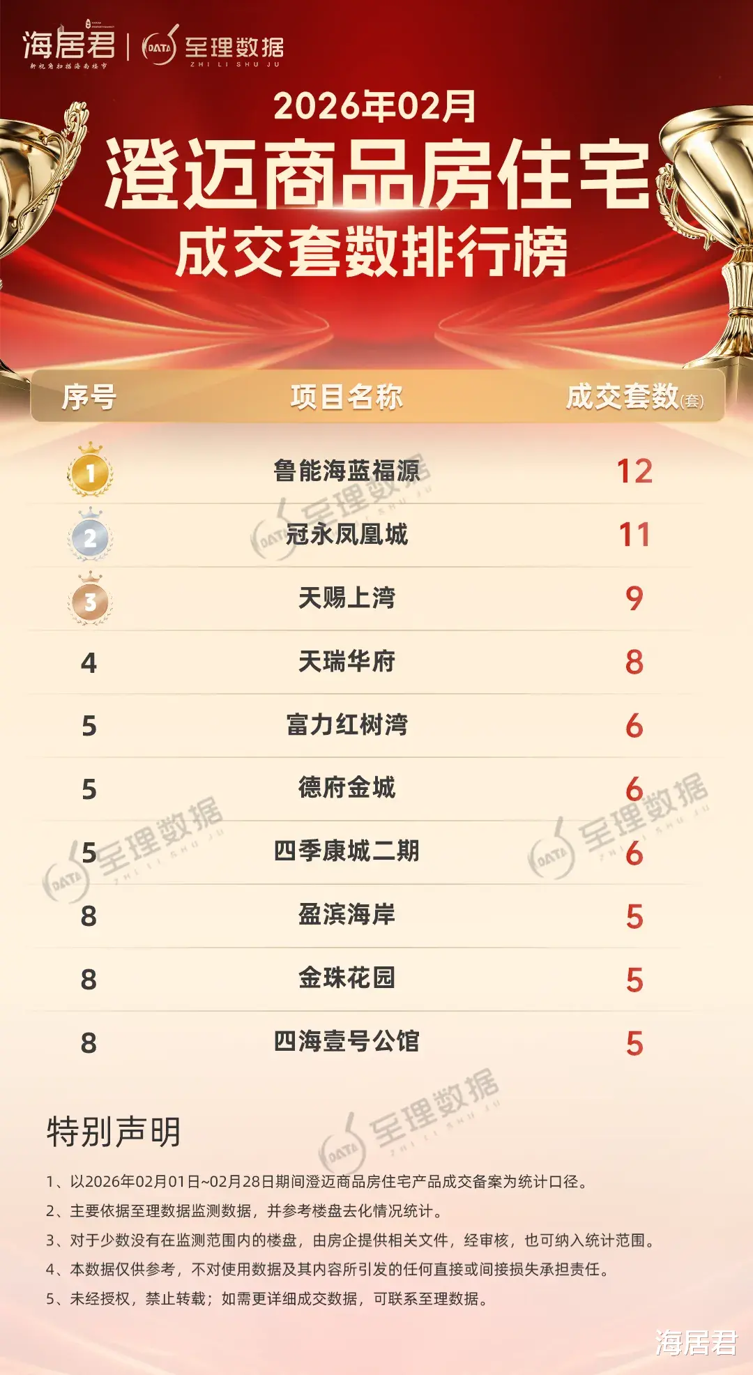 比如央企中国绿发开发的鲁能海蓝福源成交备案12套、约950平方米,蝉联澄迈商品房住宅单月成交套数冠军,是它连续第3个月夺得澄迈销冠。