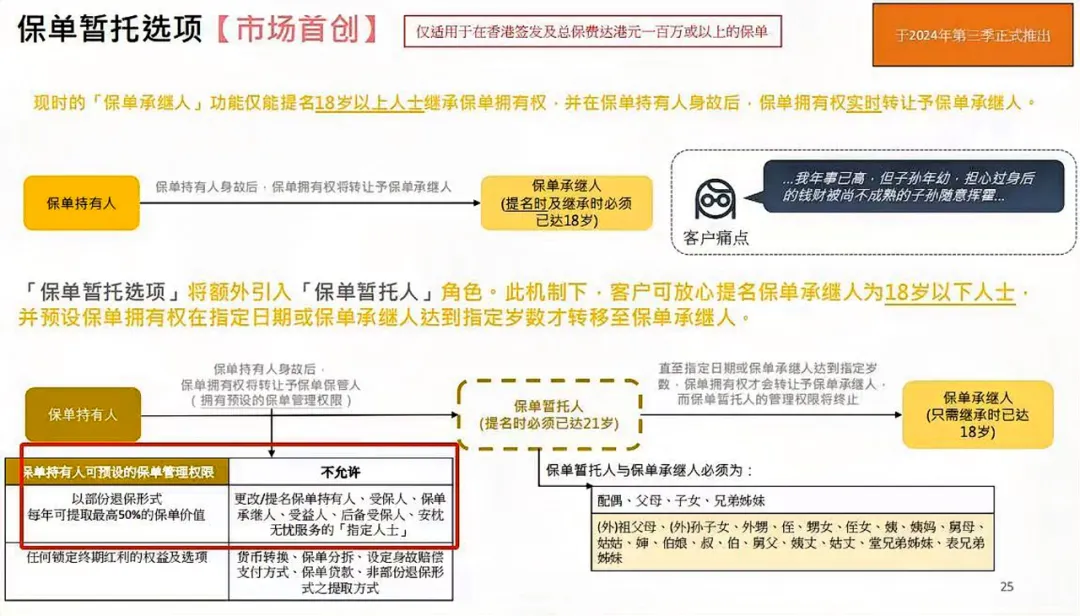 后来听了我的建议,把一套房转到孙子名下,还给孙子投保了一份50万美元的港险,儿子只作为暂托人,在孙子18岁之前,设置每年最高只可以领取7%的资金作为孙子的教育金。