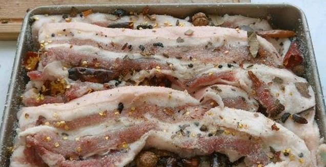 随后将处理好的肉与香料放在一起,并每隔两天翻一次面,让腊肉的风味能够更为均匀。