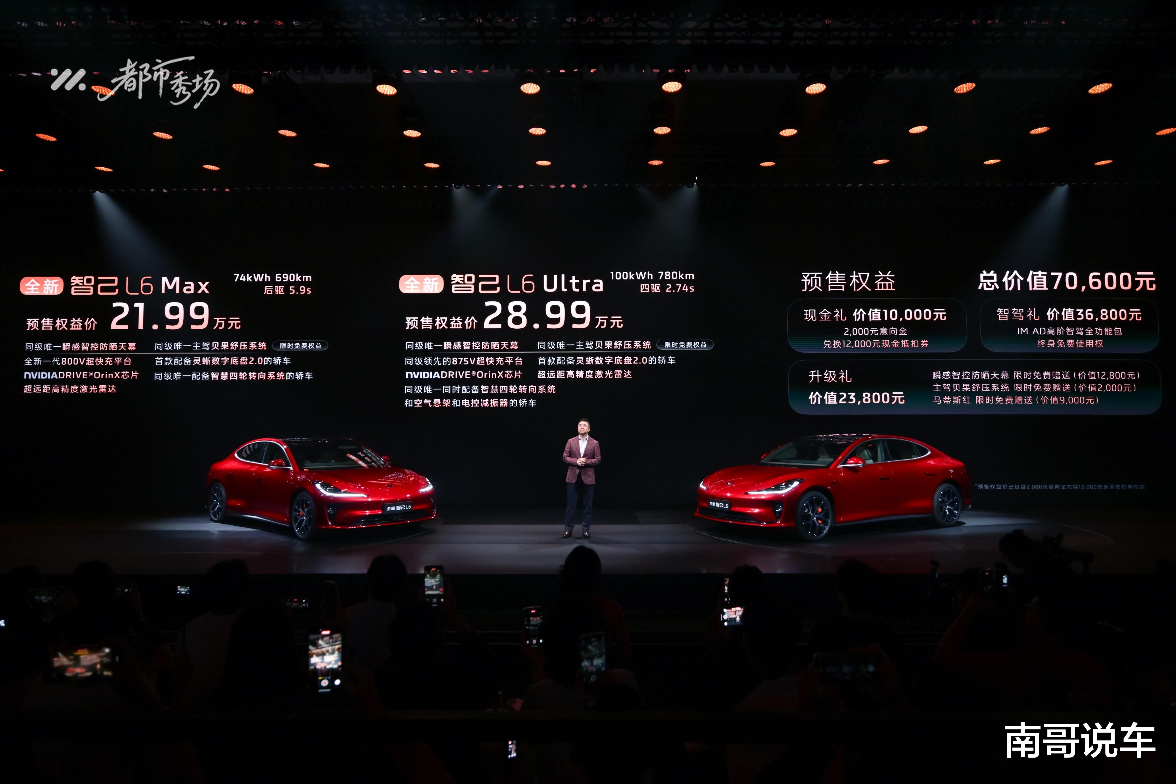 全新智己L6推出三大配置版本,预售权益价格区间为21.99万元~28.99万元。