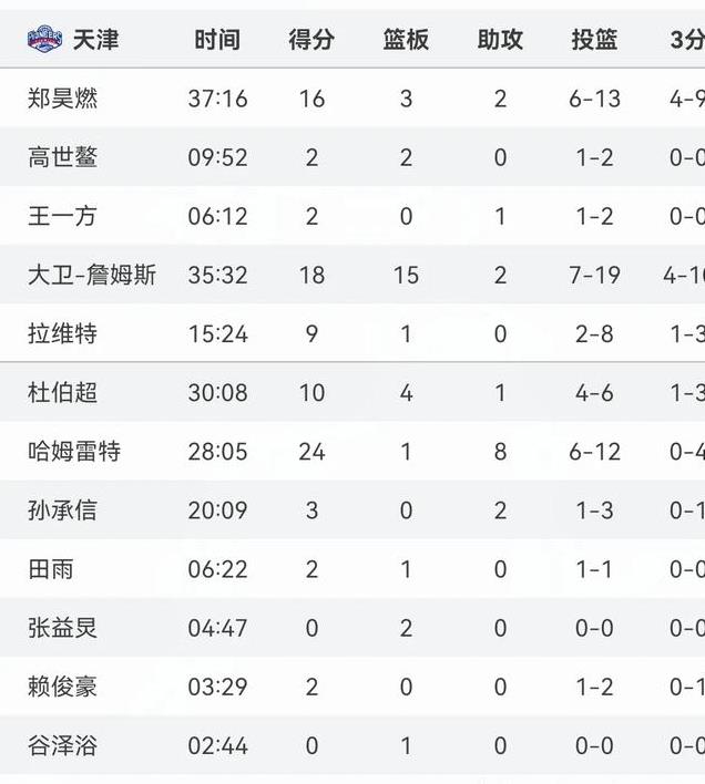 天津,郑昊燃16分,大卫詹姆斯18+15,哈姆雷特24分。