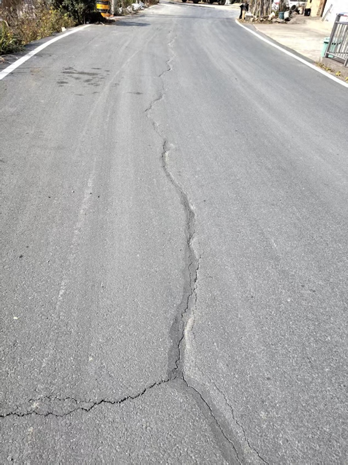 在去年已经完成翻建、通车的Y088乡道部分路段,本报看到了令人担忧的景象,崭新的柏油路面多处出现了开裂。靠近雁影村雁影桥北侧的河边路段,路面甚至出现了明显的沉降迹象。
