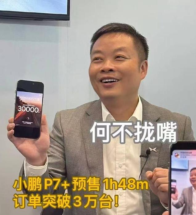 巨大的空间优势,再加上标配即高配的小鹏智驾、低能耗等Buff,小鹏P7+预售仅一小时48分,订单就成功突破了3万台,老板“亲自”笑成了表情包。不过对于他来说,小鹏P7+和小鹏MONA m03的大卖只是开了个好头,小鹏汽车真正的野心是在AI赛道上。