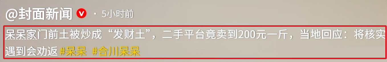 有人居然动起了“歪心思”,在网络上售卖起呆呆家门口的泥土,价格更是标到了200元一斤。