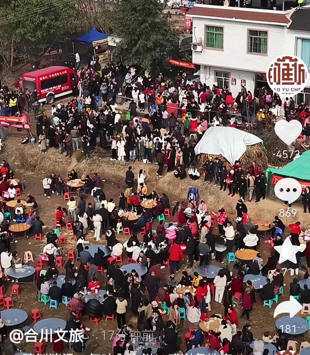 其实,前来按年猪的人远不止呆呆的几个群里的粉丝,很多网友更是闻讯赶来,这才造成了这一“盛举”。合川文旅也是第一时间出击,帮助网红呆呆一起热情款待了四方来客,现场热闹非凡,让全国人民看到了熟悉的年味。