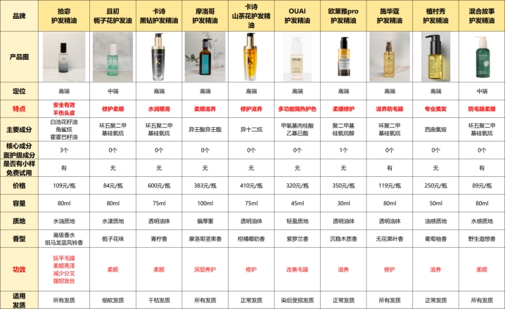 接下来,我将深入剖析几款护发精油的评测数据。