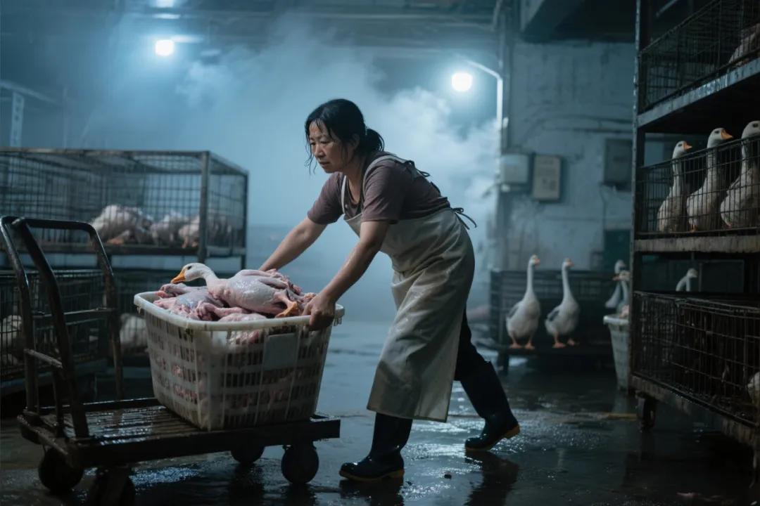 直到一次契机,一位贵人叔叔给她介绍了新工作——虽然环境更差(弥漫着鹅的味道),但收入更高,工时反而缩短。