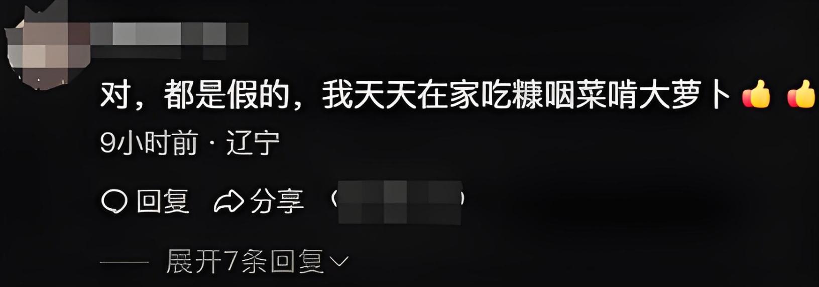 看到这位泡菜国思密达的回答,有位来自辽宁的网友评论说:“对都是假的,我天天在家吃糠咽菜啃大萝卜。”