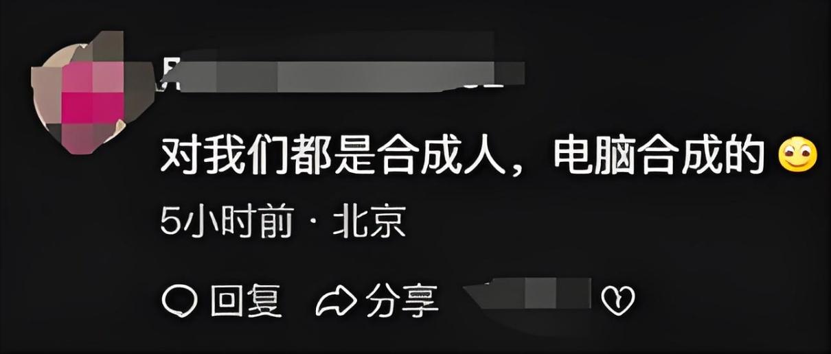 这个问题可把不少国内给逗乐了,其中一个国内网友回复道:“对我们都是合成人,电脑合成的。”