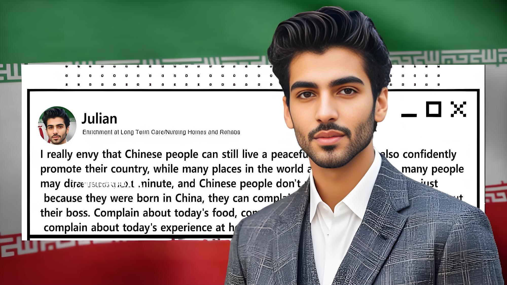 看到甲亢哥访问中国的直播后,一名来自伊朗的网友说:“真的很羡慕现在的中国人还可以平静的生活,他们还可以自信的宣传他们的国家。