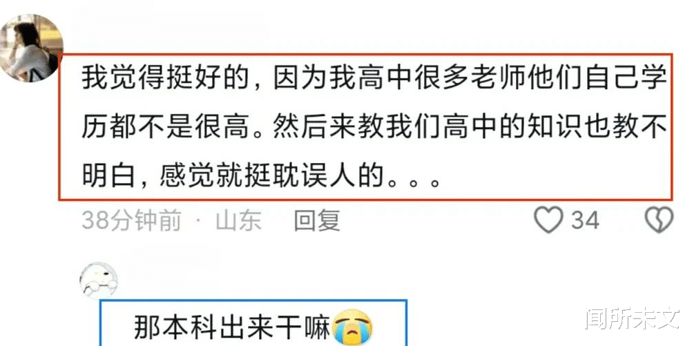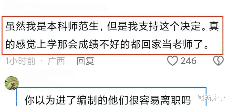 看完大家对现有教师们的评价才知道,原来提高老师学历门槛并不是一件坏事,虽说读教师专业的学生们会更难,但是最起码不会像以前那样参差不齐了,毕竟,学生们是一张纸,全靠老师们的画笔来起头!