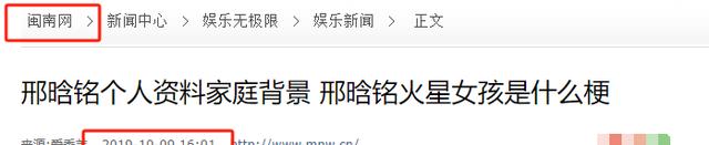 2.闽南网:《邢晗铭个人资料家庭背景 邢晗铭火星女孩是什么梗》-2019-10-9