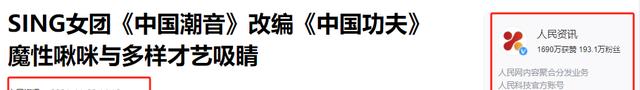 4.人民资讯:《SING女团《中国潮音》改编《中国功夫》魔性啾咪与多样才艺吸睛》-2021-11-22