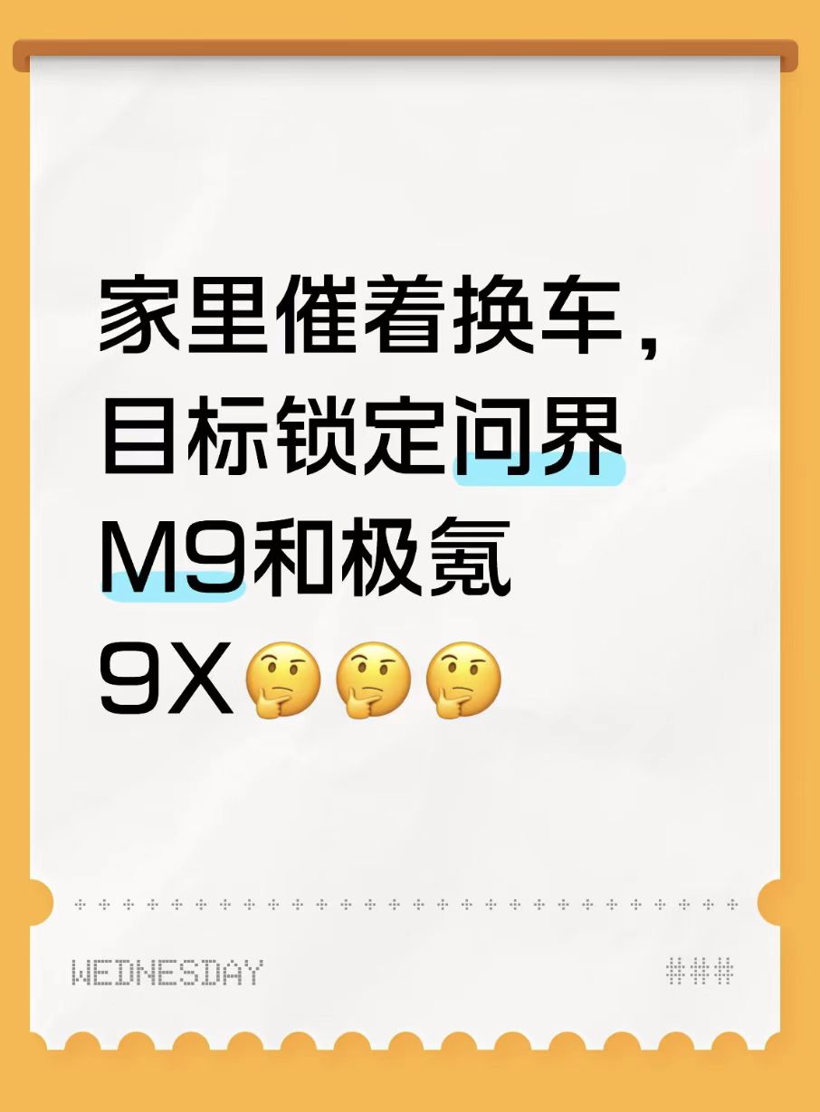 家里催着换车,目标锁定问界M9和极氪9X