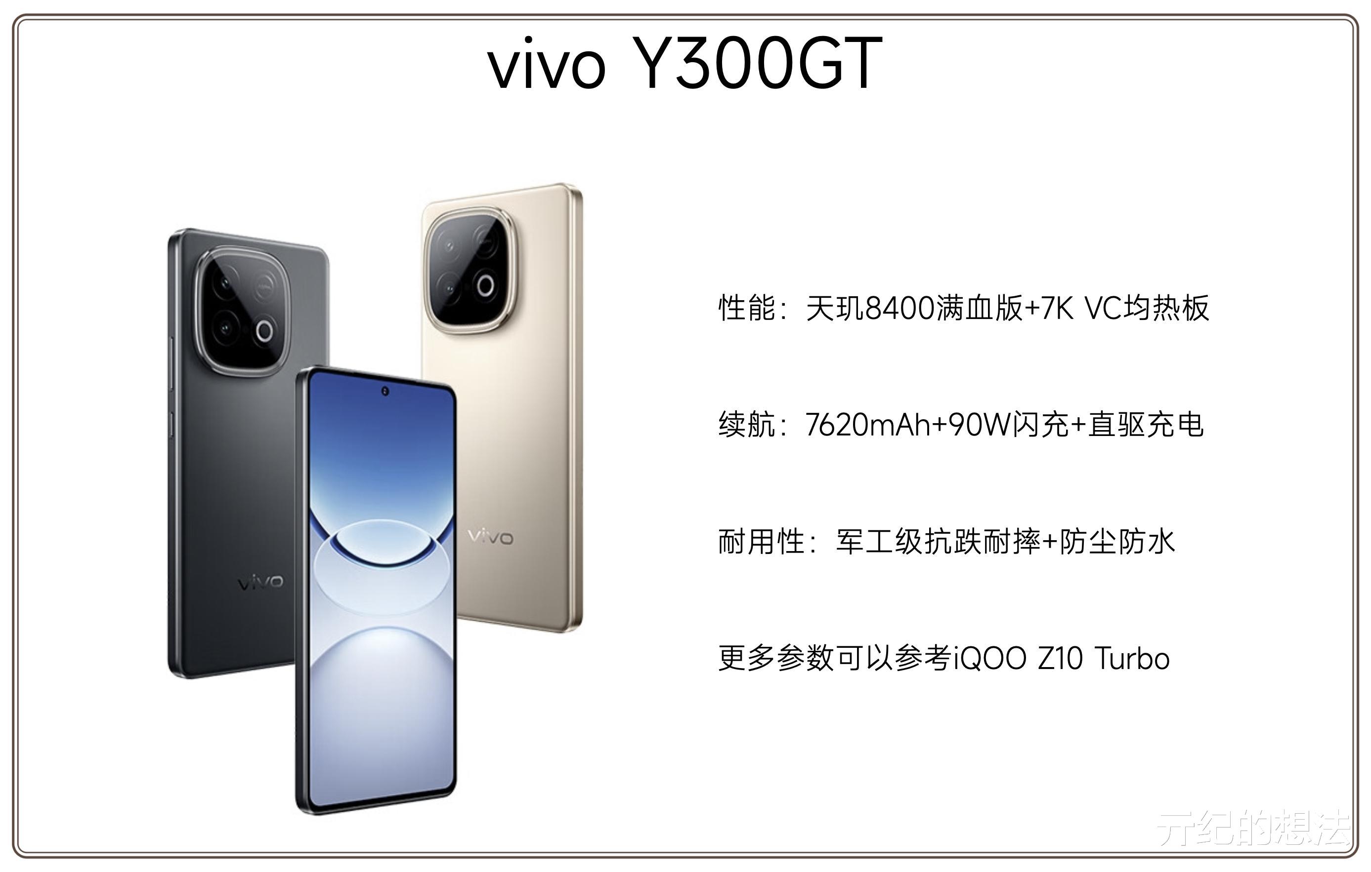 如果用一句话概括,它就是iQOO Z10 Turbo的套娃版本,最大的区别可能是后壳logo从iQOO换成了vivo。最值得期待的是官方售价,作为横向对比,iQOO Z10 Turbo(12GB+256GB)售价1699元。国补优惠价为1529元。vivo Y300GT是一款中端性能手机,核心卖点是天玑8400满血版+7620毫安时大电池,屏幕和耐用性也有不错的表现,适合追求长续航的中轻度游戏用户。