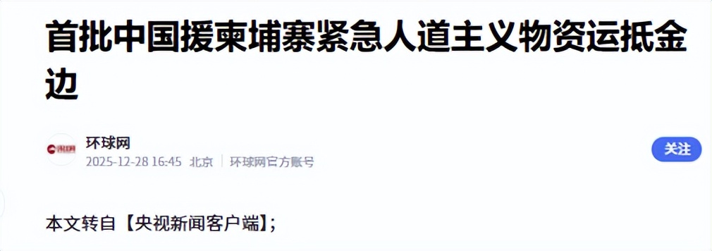柬埔寨方面也特别提到,感谢中国在推动停火和战后恢复上出的力,这批实实在在的物资,让他们落实停火协议时底气更足了。
