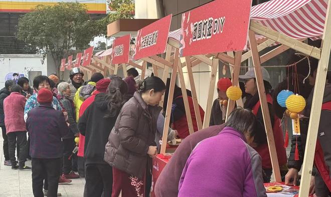 市集紧扣“团圆、祈福、迎新”主题,设置多个兼具文化韵味与互动趣味的摊位。“元旦福运剪纸坊”和“团圆灯笼DIY摊”前,居民亲手剪出福字窗花、制作红火灯笼,将新年祝福融入手工作品;“吉祥香囊手作”摊飘散着淡淡药草香,寄托着对健康平安的祈愿;“传统冰糖葫芦铺”与“暖心汤圆驿站”更是人气十足,酸甜的冰糖葫芦勾起童年记忆,一碗碗热腾腾的免费汤圆,不仅温暖了居民特别是老年人与外卖员、保洁员等新业态从业者的胃,更温暖了他们的心。
