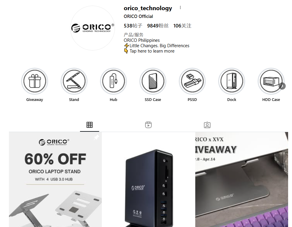 在Instagram这类以视觉驱动为核心的平台上,ORICO品牌的运营展现出了清晰的高效转化逻辑。