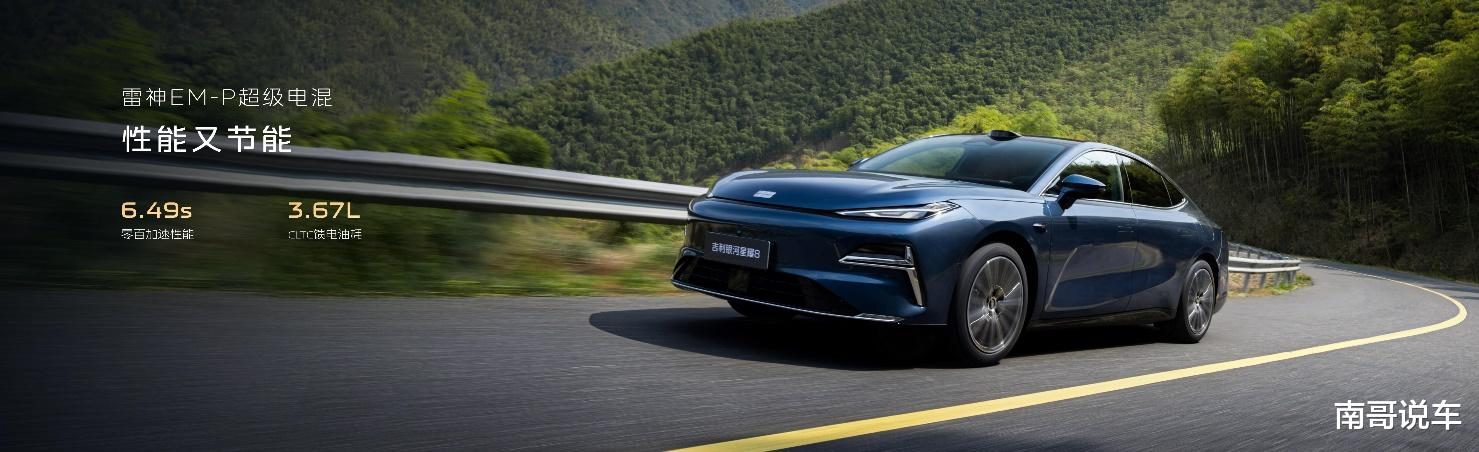 吉利银河星耀8是吉利银河品牌首款搭载雷神超级电混双动力的车型,用户既可以选择节能又性能的雷神EM-P超级电混,也可以选择极致节能、超长续航的雷神EM-i超级电混。搭载雷神EM-i超级电混的吉利银河星耀8,搭载全球最高热效率46.5%的1.5L混动专用发动机与E-DHT 11合1电混专用电驱,两大超级节能硬件助力其成为5米级最低油耗轿车,馈电油耗仅为3.36L(CLTC工况);搭载雷神EM-P超级电混的版型,则拥有6.49s的零百性能表现,百公里馈电油耗仅为3.67L(CLTC工况)。结合行业独有的星睿AI云动力,吉利银河星耀8打破既有电混轿车性能与油耗不可兼得的桎梏。