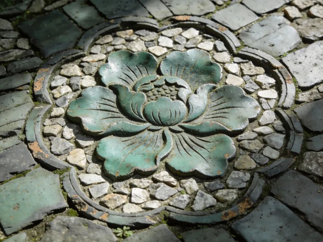 更绝的是「花瓦地」,就是用不同颜色、不同形状的瓦片,拼成各种图案,比如梅花、竹子、莲花,甚至还有十二生肖。我上次在拙政园里就看到过一片用黑瓦和白瓦拼成的梅花图案,远远看去就像地上开了一片梅花,风一吹,落叶落在上面,简直是「踏雪寻梅」的现实版。