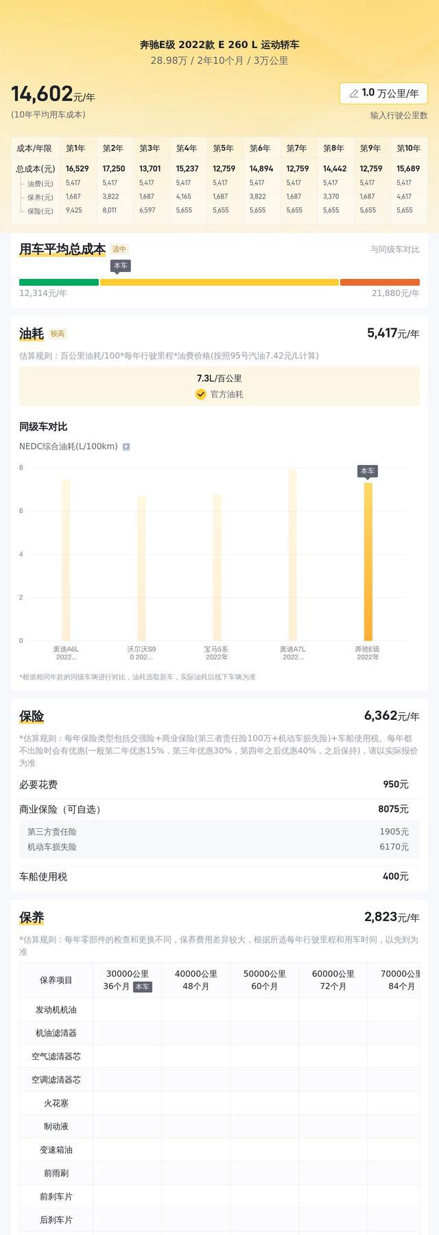 然而,消费者在购车时也需要考虑到车辆的长期养护。什么叫“长痛不如短痛”?或许就是买车的时候选择一款维护成本低的车型,让你在用车途中省心省力。奔驰E级虽然在性能与豪华感上无可挑剔,但当你计算好年均维护费之后,可能会在深夜悄悄捂脸叹息:这笔钱可是月供的一。