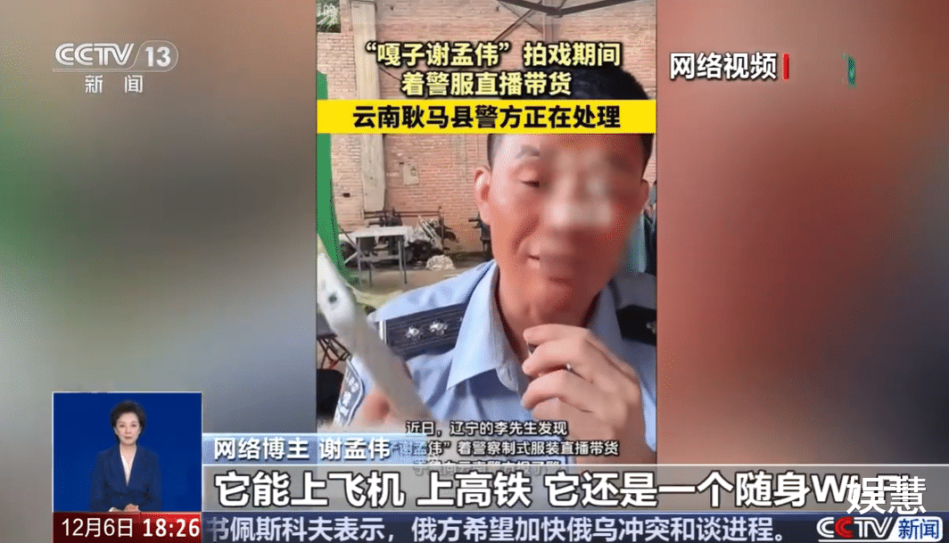 在央视新闻频道最近的报道中,谢孟伟再次被点名。除了谈到他穿警服直播“目无法纪、口出狂言”外,还实锤其直播间售卖假酒。