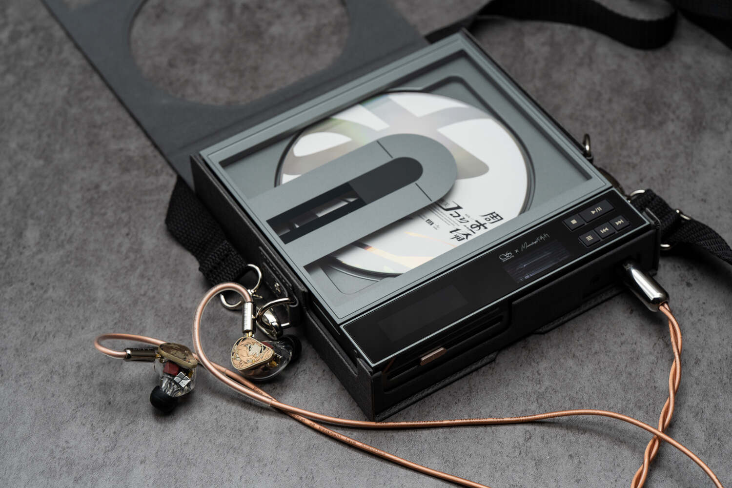 Crossover的外观设计延续了EC ZERO系列的框架,总体结构和功能按键设置是完全一样的;而CD机上盖部分,Crossover在左侧做了一个视觉设计,看起来有些致敬几十年前的SONY老DISCMAN;而总体的配色为银灰色,这也是Crossover在EC ZERO和EC ZERO T放一起时能一眼认出来的明显特征。在按键区右侧有水月雨和山灵的Logo。作为便携CD机,Crossover直接标配了便携包(也可以理解为皮套),虽然我不大可能背着这台机器出门,但不排除别的烧友有这样的需求;便携包对于CD机机身的大部分面积都进行了保护,可以避免日常使用中可能发生的各种磕碰。当然,套上便携包之后的颜值还蛮不错的……Crossover的机背接口没什么变化,仍然是3.5和4.4的Line out、3.5同轴/光纤、USB DAC、USB供电、电池/DC切换拨杆,对应的功能也与原版一致。Crossover的机背隐藏着一幅“屏占比”超高的满幅的冬装水月友希插画,如果你不把机器翻转过来是完全看不到这隐藏的“二次元”属性的,与科技感、机械感十足的Crossover机身设计构成了巨大的视觉反差。