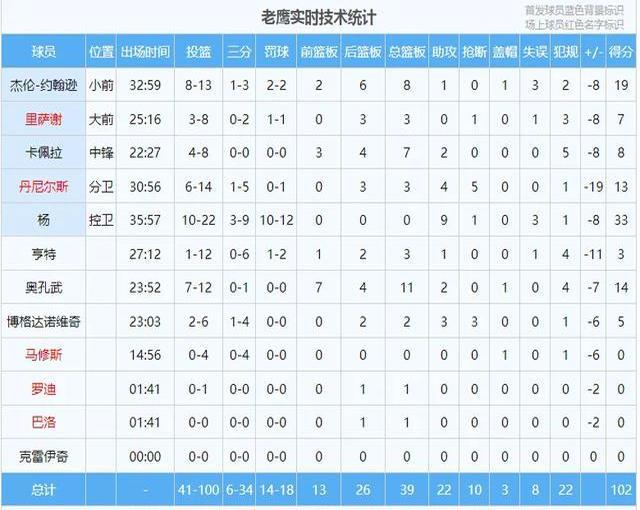 老鹰那边,特雷·杨虽然拿了33分,但也只能干瞪眼。