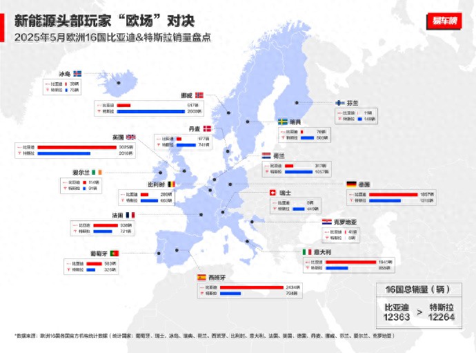 比亚迪从出海到领跑,主要是在电动车上长期技术积累。在行业中比亚迪凭借先进的电动车技术,如刀片电池、DM第五代超级混动技术,兆瓦闪充、智驾系统等行业中领先的电动车技术,也解决了电动车的充电难得痛点和续航问题,也是出海领先的制胜法宝。在5月份,在欧洲16国总销量再次超过特斯拉,也加速了在欧洲的电动化布局,在小型纯电动汽车市场,比亚迪也同步上市了最具竞争力的海鸥发布会,成功切入欧洲消费者最为关注的市场,打开了欧洲市场,同样在亚洲七国,销量也是大幅领先特斯拉,主要在新加坡、马来西亚、泰国、日本等重点市场,销量表现也非常出色,比亚迪能有这样可喜的出海成绩,也是通过海外建厂,丰富产品矩阵,优化物流系统等举措,逐一攻克难关,解决了出海难得问题,也是对出海的大幅报道功不可没,能有现在可喜的领先销量,还是得益于先进技术加持,今后出海销量还会有大幅提升空间,也希望中国比亚迪制造走出国门,领跑新能源汽车走向世界。