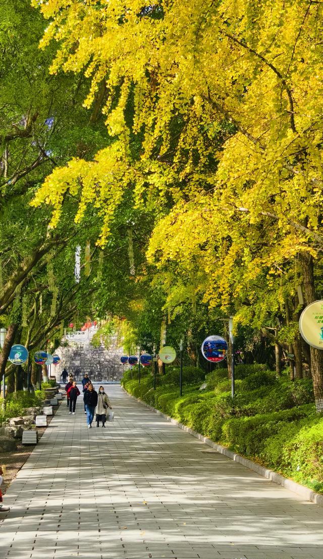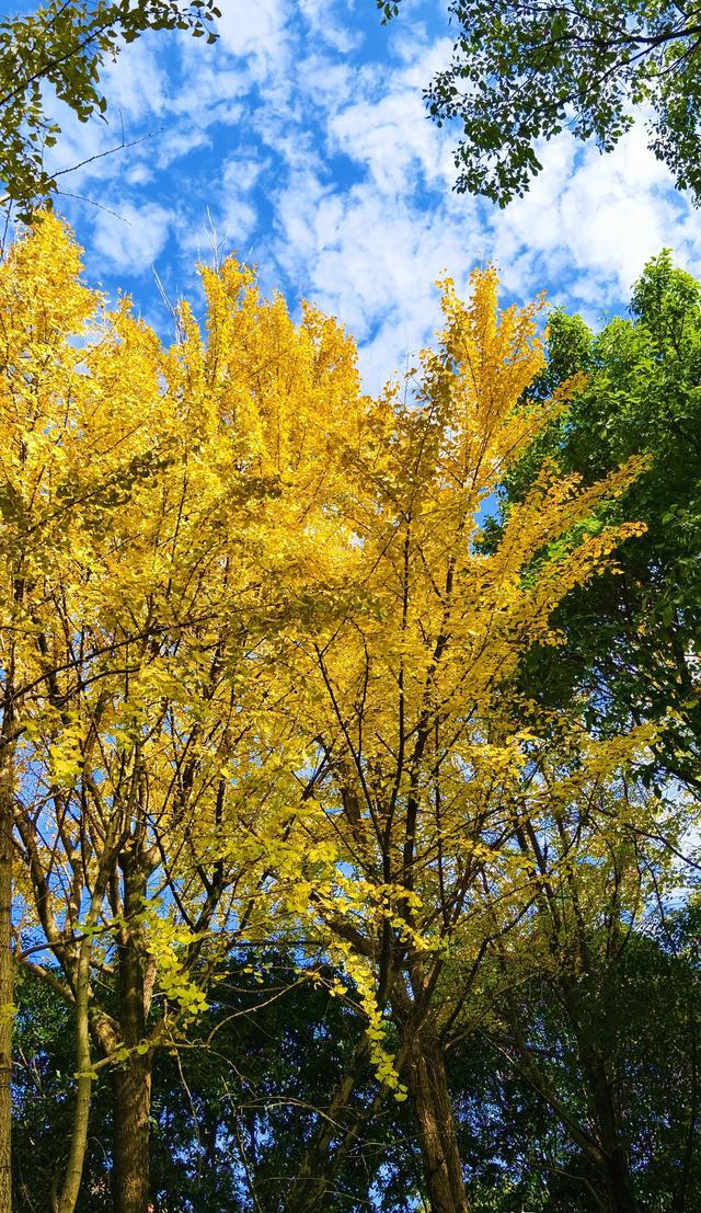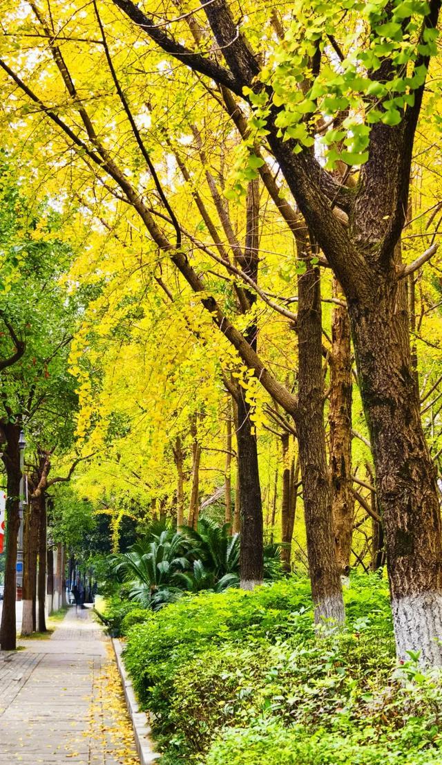 走在银杏林下面的林荫小道,景色优美,多姿多彩。