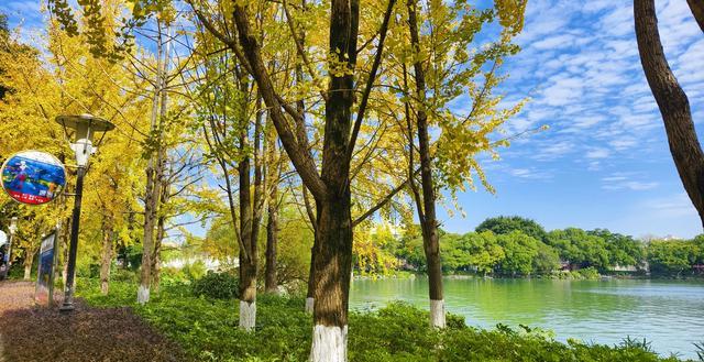 一般要到12月中旬到12月底,是市区银杏最佳观赏时间。深秋里,银杏泛黄时,榕湖、桂湖美成了一首诗。