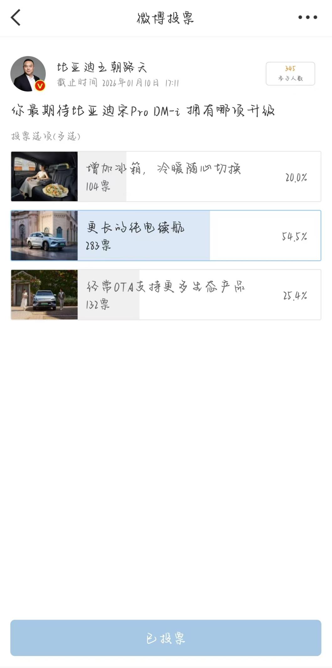 昨天刷到比亚迪王朝的微博,问大家最期待宋Pro DM-i有什么升级,果然“更长纯电续航”成了评论区主流呼声。没想到今天比亚迪就要开双秦210公里纯电续航的发布会,这节奏简直像提前写好的剧本!作为一个盯了26款宋Pro DM-i几个月的用户,我瞬间嗅到了信号:宋Pro DM-i的长续航版,恐怕真的要来了。